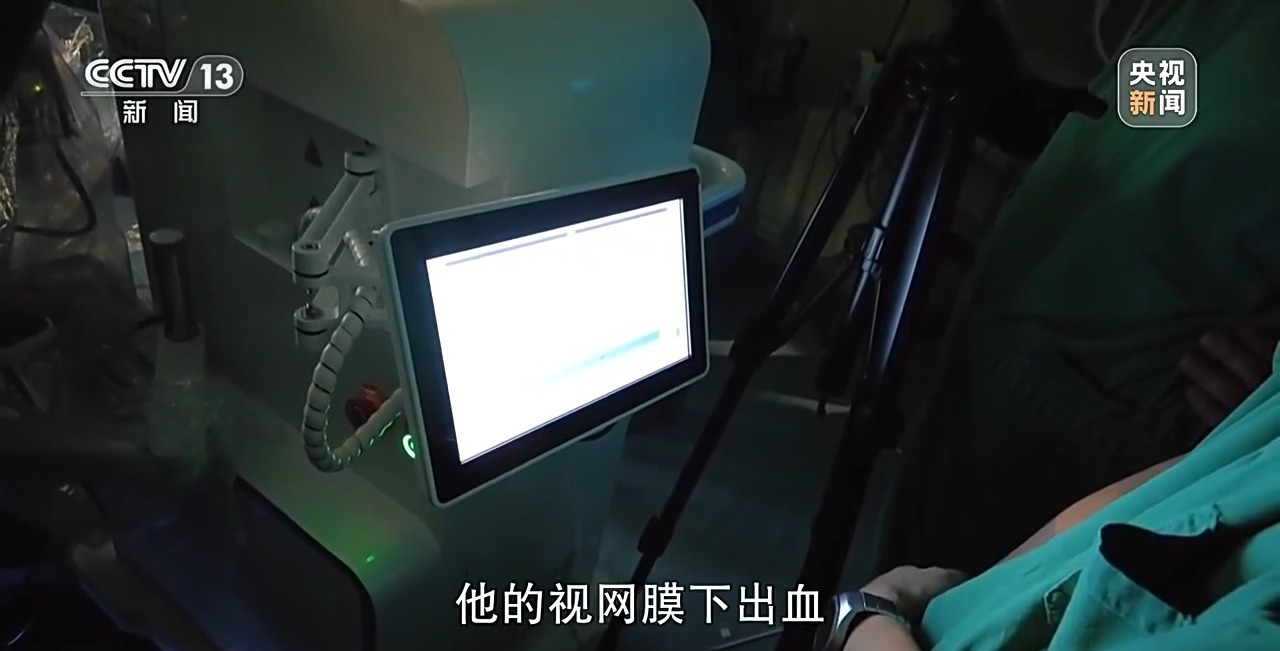 中山大学中山眼科中心主任林浩田:我们的视网膜是100到300微米,差不多就是这个厚度。这个厚度分为十层,想要在其中两层之间涂上这种药是很困难的。这是由机器人远程完成的,这在国内外尚属首创。其准确性和精细度是一个合格的飞跃。